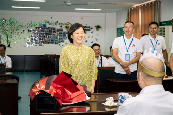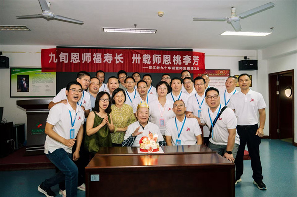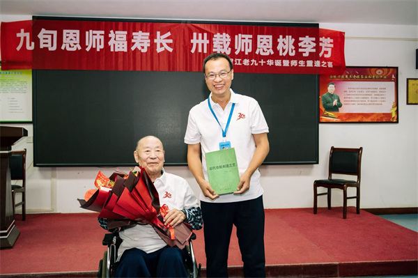 金秋送爽,丹桂飘香。在这个家国同庆的中秋、国庆双节假期,南昌绿康豫章家园因一群特殊客人的到来而格外温暖。他们身着印有“30”标识的统一白色T恤衫,这是来自南昌航空大学九五届的学子,此行专为探望九旬恩师——南昌航空大学老教授江辅炎,为他庆祝九十大寿,续一段跨越三十载的师生深情。 走廊里,学生们簇拥着坐轮椅的江爷爷缓缓前行,有人推轮椅,有人捧献花,有人携礼物,脸上满是重逢的喜悦。这位曾在讲坛耕耘数十载的老教授,虽已九旬,眼神里却依旧闪烁着对学生的关切。 同学们围坐在江爷爷身旁,像当年在课堂上一样,逐一自我介绍,细细道来离开母校三十载的奋斗历程与生活点滴。从职场打拼到人生感悟,他们不约而同地将成就归功于江教授当年的教导。“老师您当年教的专业课,现在还在帮我解决实际问题!”“您说的‘做学问先做人’,我记了一辈子!”一句句朴实的话语,是三十载光阴里师恩的回响。 岁月改变了容颜,却未曾改变这份深厚的师生情谊。江爷爷笑着、听着,眼中闪烁着欣慰的光芒,不时插话,精准地道出学生们当年的趣事和糗事,引得满堂欢笑,往昔校园的点滴在回忆中鲜活,笑声与感动在房间里交织,仿佛时光一下子被拉回到了三十年前的青葱校园。 谈笑间,江爷爷拿出自己珍藏几十年的一本专业书籍,书页已微微泛黄,却保存得完好无损。他郑重地将其交到那位已成为企业总工程师的学生手中,语重心长地说:“这本书跟随我一辈子,里面有我的笔记和备注,我赠送给你,这里面包含国内外许多专业数据,对你今后的工作都是会有帮助的。”这份沉甸甸的寄托,让在场所有人无不动容。所谓“传道授业解惑”,师者的初心与期望,尽在其中。 为表达对恩师的感激之情,学生们也捧出了特意定制的一份礼物,——一枚晶莹剔透的水晶纪念牌。上面镌刻着八个熠熠生辉的大字:“师恩难忘 桃李芬芳 誉满天下”这十二个字,不仅是对江爷爷教书育人一生的崇高礼赞,也是这群已是社会中流砥柱的学生们共同的心声,更是对师生情谊的永恒定格。 当纪念牌递到江爷爷手中时,他轻轻抚摸着,眼中泛起泪光。这份跨越半个世纪的师道传承,在这一刻凝成了最动人的画面。江爷爷也向同学们讲述了自己在南昌绿康养老院的幸福生活,让同学们放心。 活动的最后,学生们推上了精美的生日蛋糕,并为江爷爷戴上了可爱的生日皇冠。在温馨的《生日快乐》歌声中,江爷爷许下心愿,吹灭蜡烛,脸上洋溢着幸福孩童般的笑容。 “咔嚓”一声,镜头定格下了这珍贵的一刻:头戴皇冠、笑容灿烂的江爷爷被学生们紧紧簇拥在中央,镜头按下的瞬间,时间仿佛在此刻停驻。 九旬恩师的福寿绵长,三十载师恩的桃李芬芳,都在这张合影里有了最温暖的注解。这不仅是一场生日庆典,更是一次师生情谊的盛大回望。师恩如灯,照亮的不仅是一段青春,更是一生的征途;而学生们的牵挂与感恩,便是对师道最动人的回响。 在南昌绿康豫章家园类似江爷爷的学者院内还有很多,南昌绿康不仅是养老的居所,更是长者们晚年的“精神港湾”。他们带着半生的智慧与热爱在此相聚,无需追赶时光,只需在工作人员的陪伴与照料中,把日子过成自己喜欢的模样。
