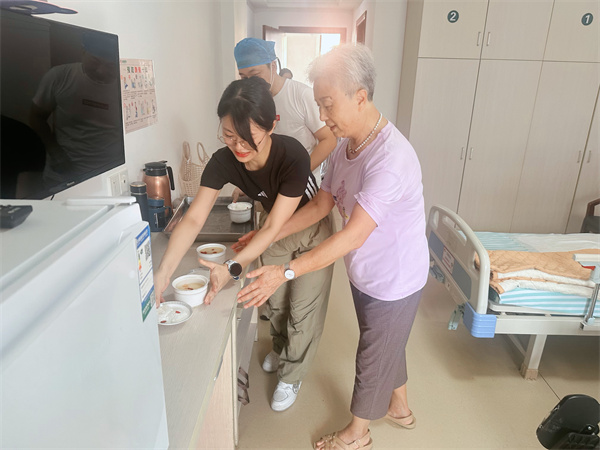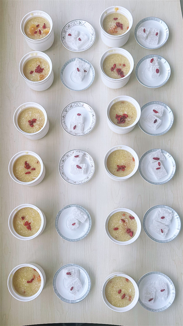 寒露惊秋晚,朝看菊渐黄。10月8日,我们迎来了秋季的第五个节气——寒露 。寒露时节,气温渐凉,空气干燥,正是注重滋阴润燥、养护脾胃的关键时期。为了让长者们感受到浓浓的节气关怀与“家”的温暖,南昌绿康豫章家园精心准备了一份特别的寒露养生美食,送到每一位长者手中,将节气的韵味化作舌尖的温暖,更化作一份真挚的关怀。 寒露时节,饮食养生当以“滋阴润燥、健脾养胃”为重。豫章家厨房的厨师们深谙此道,秉承“应时而食”的养生理念,选用当令食材,用心打造两款养生佳品:清香葛粉糕和温润木瓜小米粥。师傅们将素有“千年人参”美誉的葛根粉细细调开,慢火熬制,制成晶莹剔透,口感Q弹软糯,味道清甜不腻的葛粉糕,小小一块葛粉糕,不仅润泽了长者们可能因秋燥而干渴的喉咙,更将一份来自大地的秋日滋养融入其中。 搭配暖胃的木瓜小米粥,为长者们带来由内而外的熨帖与温暖。 “阿姨,今天是寒露,食堂特意做了些温润的小点心,您尝尝合不合口味?”“伯伯,天气凉了,喝碗热粥暖暖胃。”副院长陈兴国和秦丽梅一边亲切地递上餐点,一边与长者们闲话家常,关切地询问他们的近况与需求。一声声温暖的问候,一句句贴心的叮嘱,让长者们脸上洋溢出幸福的笑容,感受到了如家人般的关怀与尊重。长者们手捧温热的粥糕,脸上洋溢着幸福的笑容,纷纷为这份应时节、暖人心的细致服务点赞。 寒露虽至,温情不减。寒露虽至,温情不减。一碗暖粥,一块软糕,传递的是南昌绿康豫章家园对长者们无微不至的关爱与守护。愿这份寒露的温暖,滋润每一位长者的心田,陪伴大家健康、舒适、愉悦地度过金秋时节。南昌绿康豫章家园将继续遵循自然节律,用心用情,为长者们打造一个更加温暖、健康、幸福的家园。